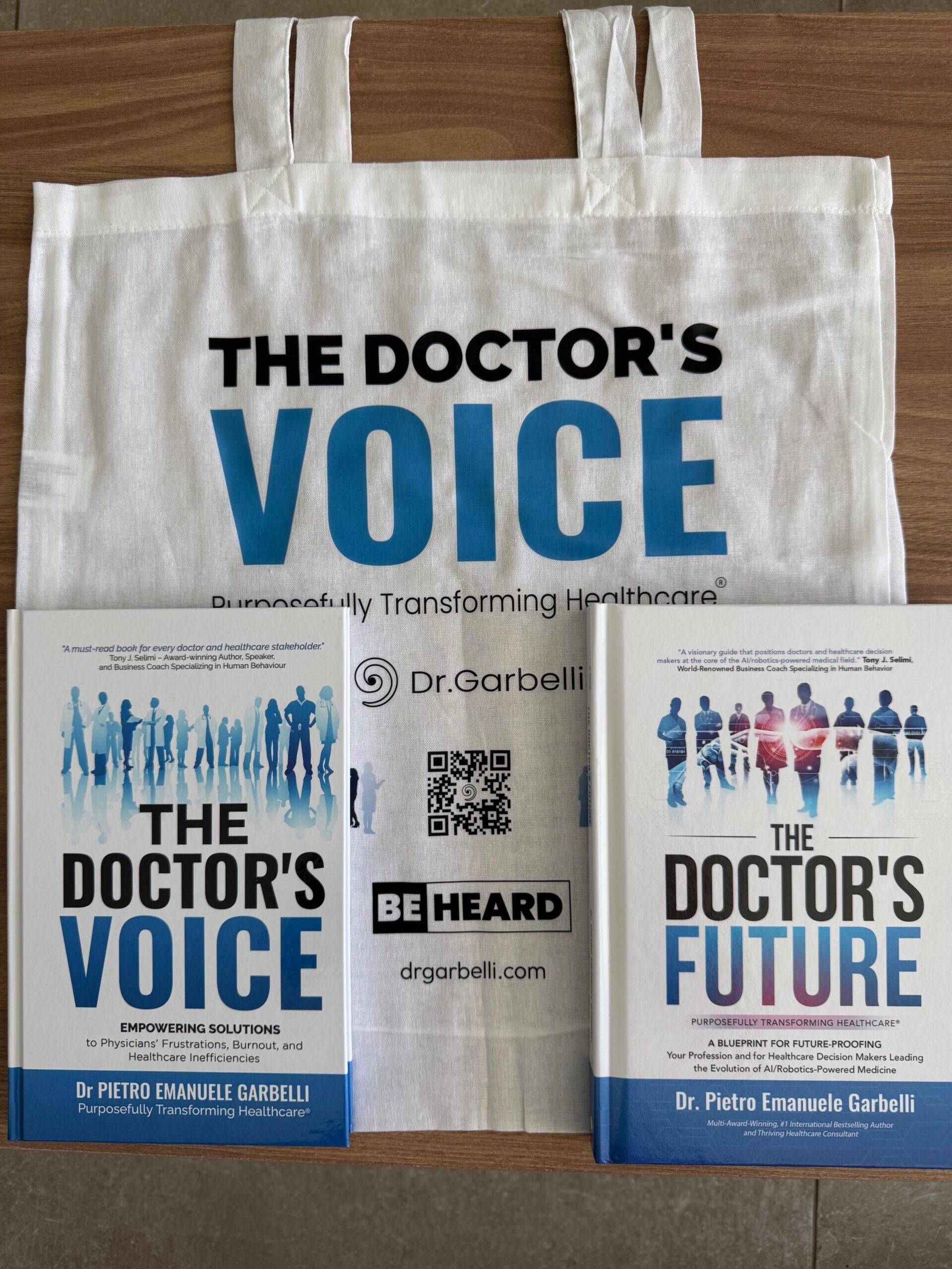 Author-signed hardcover copies of The Doctor’s Voice and The Doctor’s Future books by Dr Pietro Emanuele Garbelli.